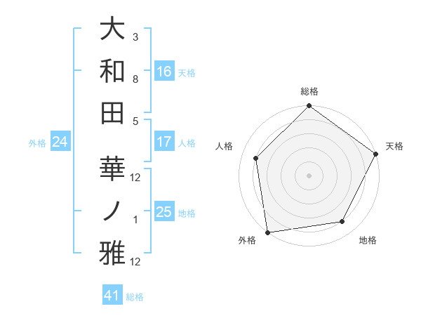 大和田 華ノ雅さんを姓名の画数から五運を鑑定