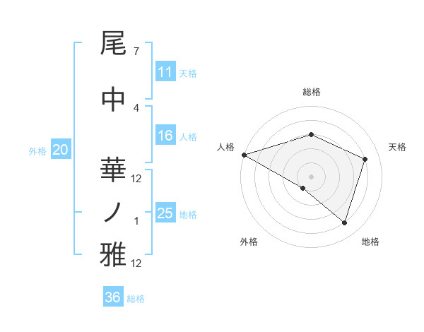 尾中 華ノ雅さんを姓名の画数から五運を鑑定