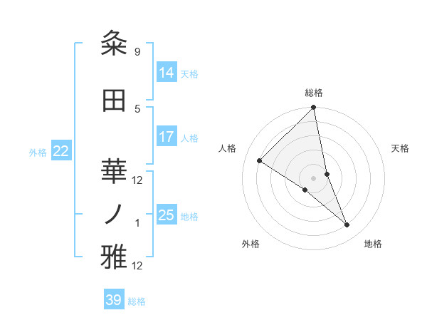 粂田 華ノ雅さんを姓名の画数から五運を鑑定