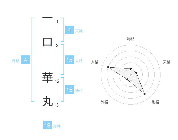 一口 華丸さんの地格は15画の4点!