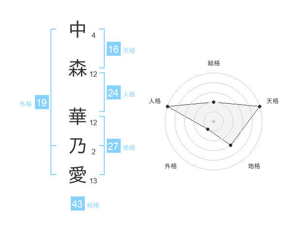 中森 華乃愛さんを姓名の画数から五運を鑑定