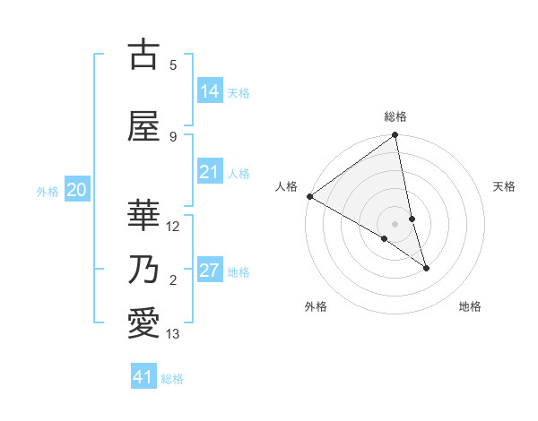 古屋 華乃愛さんの総格は41画の5点!