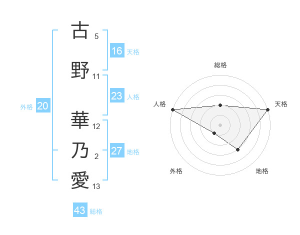 古野 華乃愛さんを姓名の画数から五運を鑑定