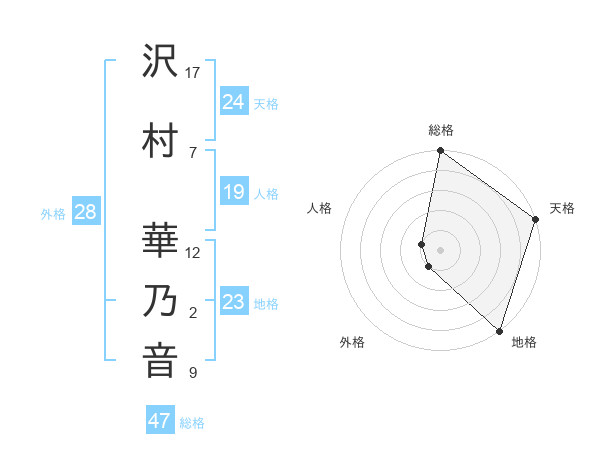 沢村 華乃音さんを姓名の画数から五運を鑑定