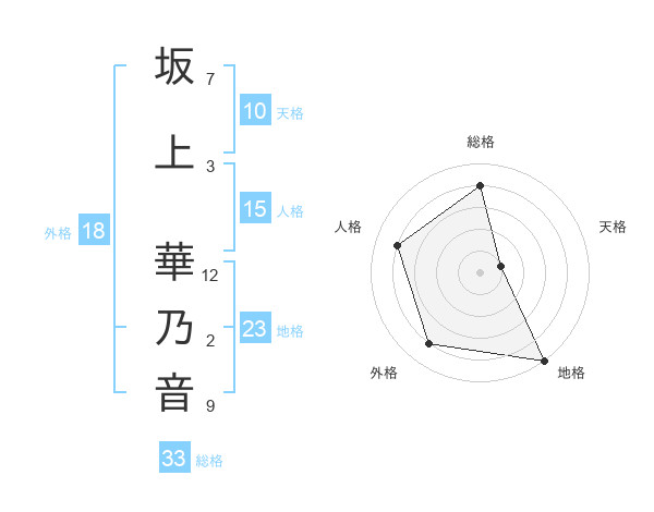 坂上 華乃音さんの総格は33画の4点!