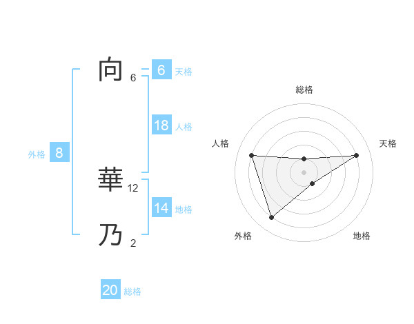 向 華乃さんの総格は20画の1点!