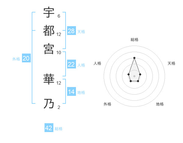 宇都宮 華乃さんを姓名の画数から五運を鑑定
