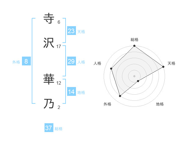 寺沢 華乃さんを姓名の画数から五運を鑑定