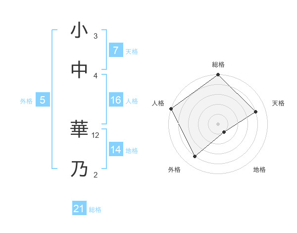 小中 華乃さんの総格は21画の5点!