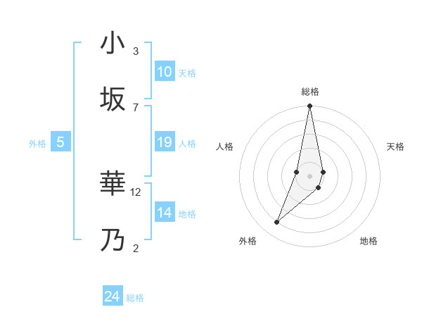 小坂 華乃さんを姓名の画数から五運を鑑定
