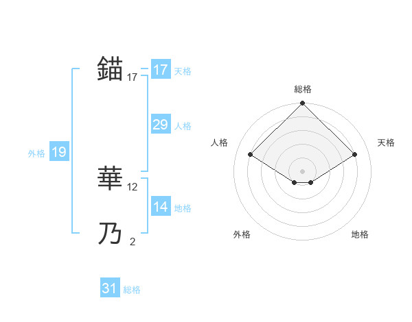 錨 華乃さんの天格は17画の4点!