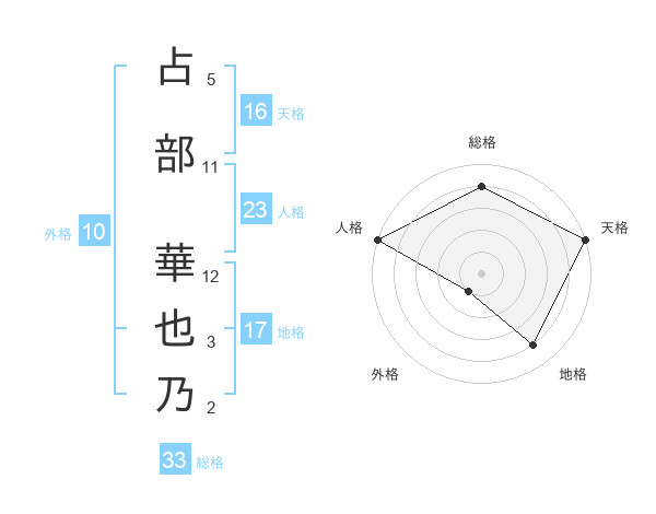 占部 華也乃さんを姓名の画数から五運を鑑定