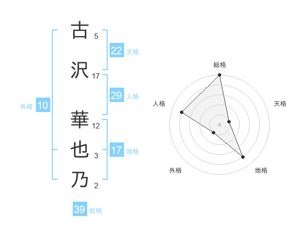 古沢 華也乃さんを姓名の画数から五運を鑑定