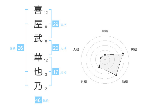 喜屋武 華也乃さんの外格は26画の2点!
