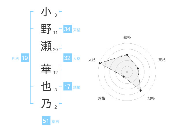 小野瀬 華也乃さんの総格は51画の3点