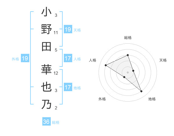 小野田 華也乃さんを姓名の画数から五運を鑑定