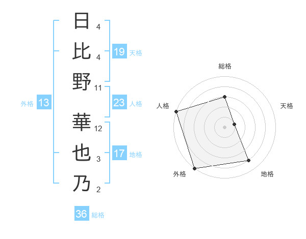 日比野 華也乃さんを姓名の画数から五運を鑑定