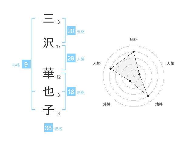 三沢 華也子さんを姓名の画数から五運を鑑定