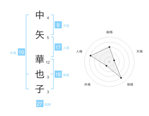 中矢 華也子さんを姓名の画数から五運を鑑定