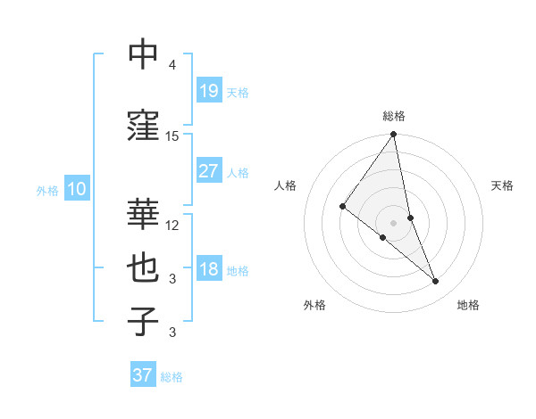 中窪 華也子さんを姓名の画数から五運を鑑定