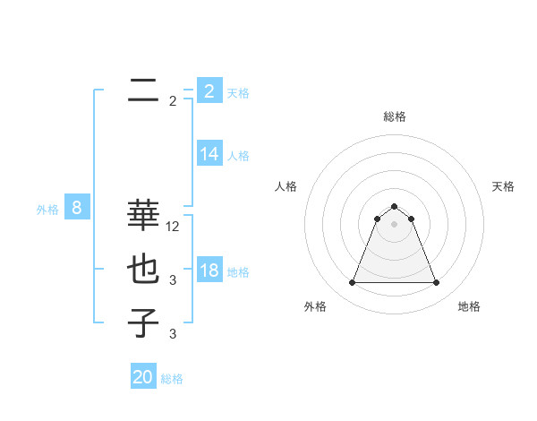 二 華也子さんの総格は20画の1点!