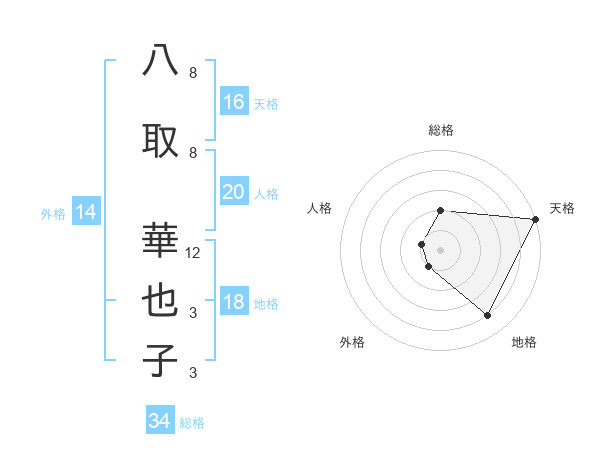 八取 華也子さんの天格は16画の5点!
