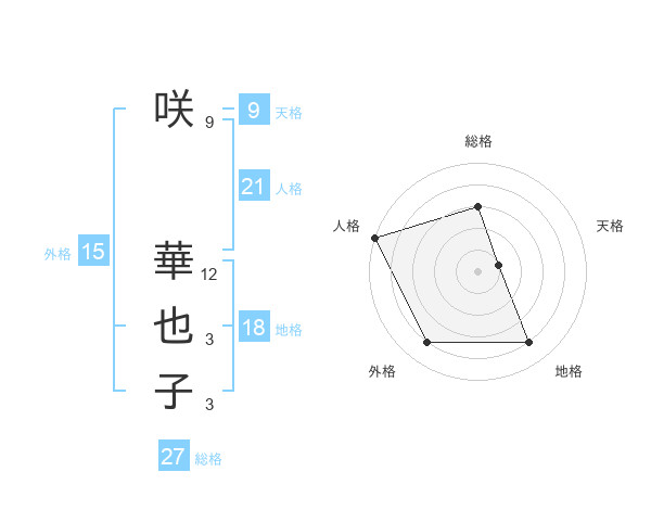 咲 華也子さんの人格は21画の5点!