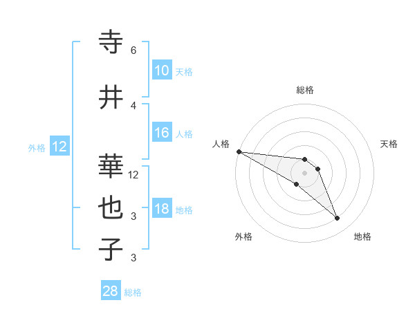 寺井 華也子さんの総格は28画の1点!