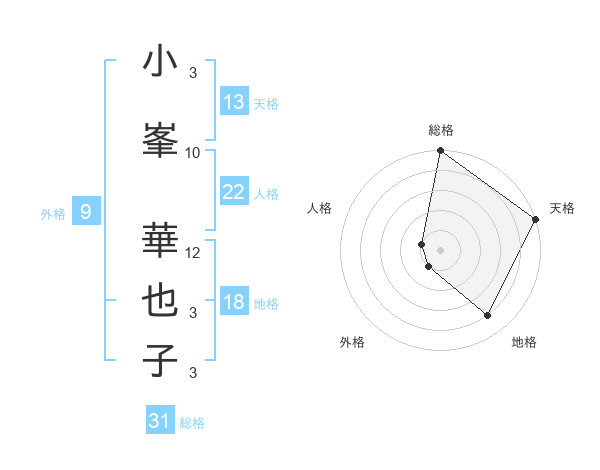 小峯 華也子さんを姓名の画数から五運を鑑定