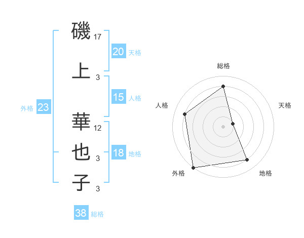 磯上 華也子さんを姓名の画数から五運を鑑定