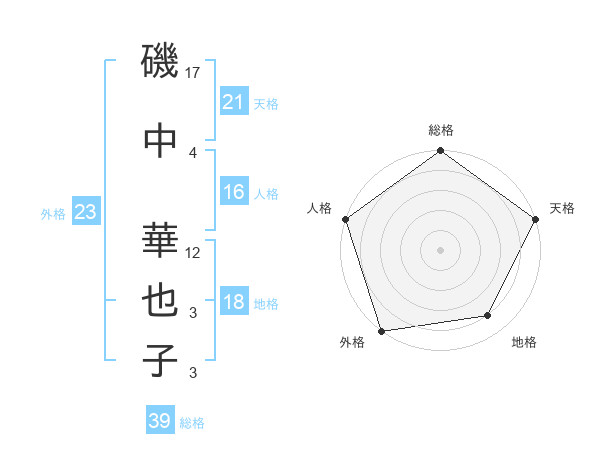 磯中 華也子さんを姓名の画数から五運を鑑定