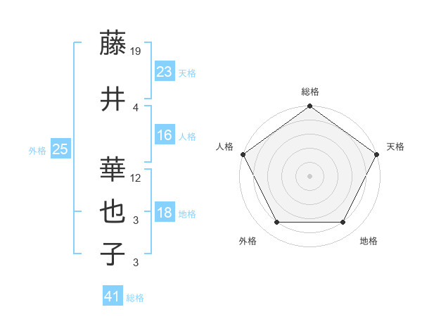 藤井 華也子さんを姓名の画数から五運を鑑定
