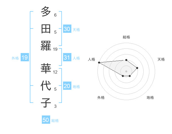 多田羅 華代子さんを姓名の画数から五運を鑑定