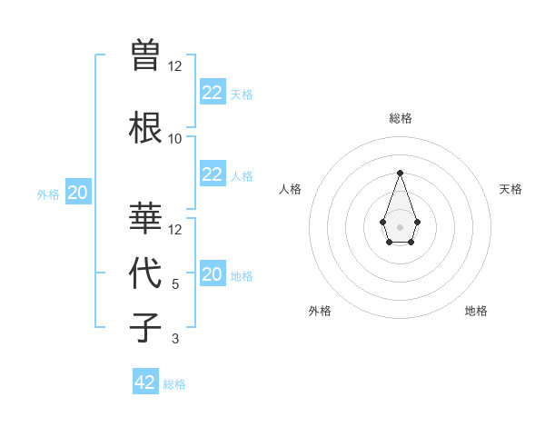 曽根 華代子さんを姓名の画数から五運を鑑定
