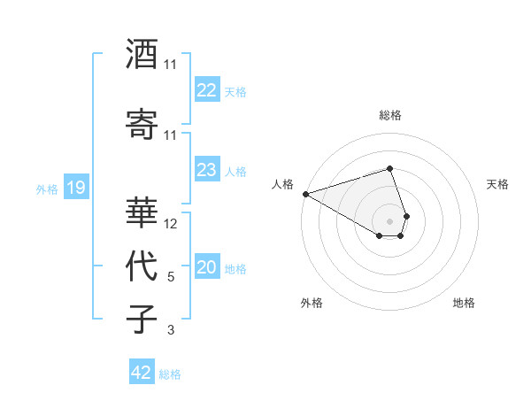 酒寄 華代子さんを姓名の画数から五運を鑑定