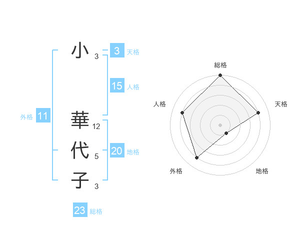 小 華代子さんの総格は23画の5点!