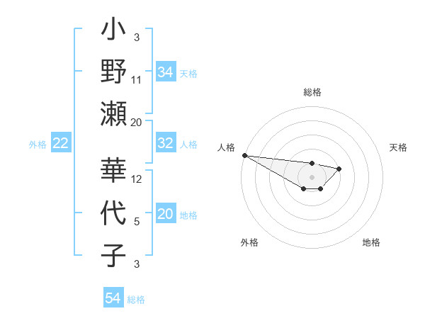 小野瀬 華代子さんの外格は22画の1点!