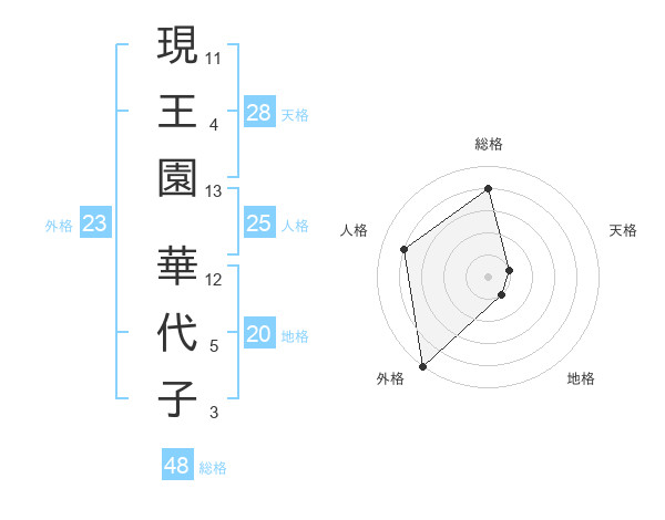 現王園 華代子さんを姓名の画数から五運を鑑定