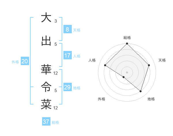 大出 華令菜さんの天格は8画の4点!