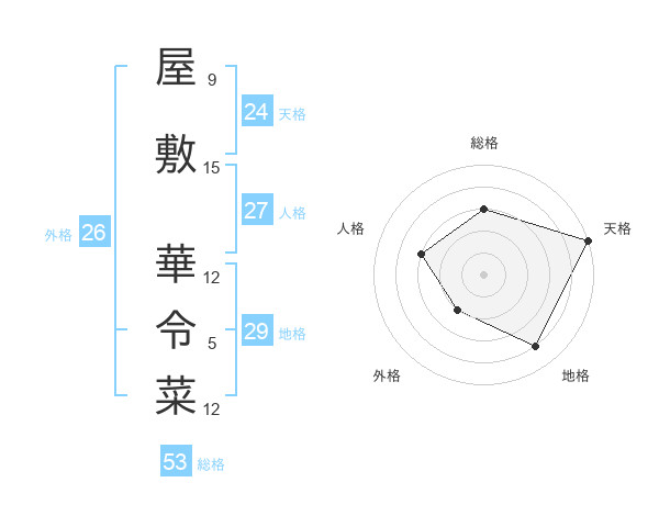 屋敷 華令菜さんを姓名の画数から五運を鑑定