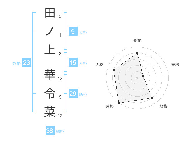 田ノ上 華令菜さんの総格は38画の4点