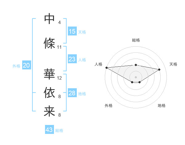 中條 華依来さんの天格は15画の4点!
