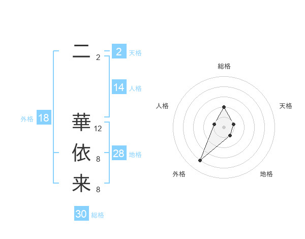 二 華依来さんの外格は18画の4点!