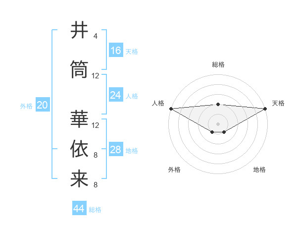 井筒 華依来さんの天格は16画の5点!