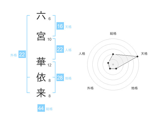 六宮 華依来さんを姓名の画数から五運を鑑定