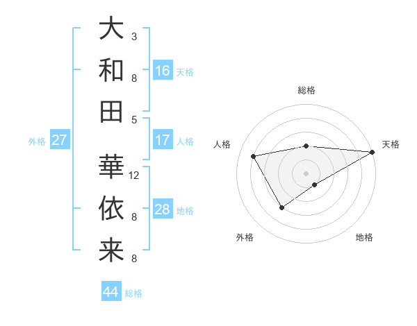 大和田 華依来さんの天格は16画の5点