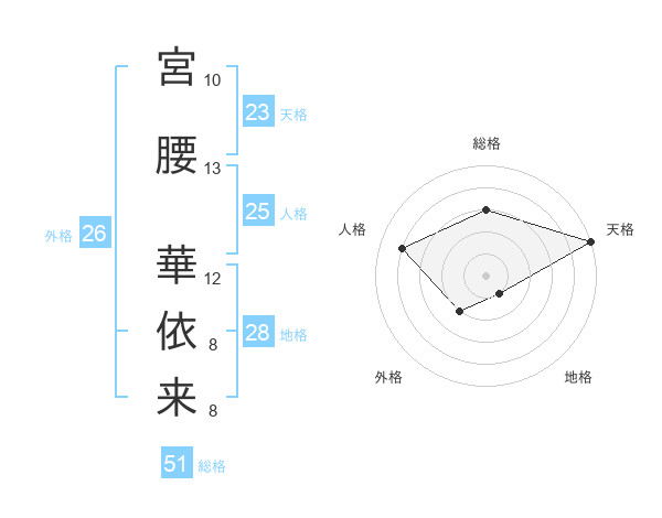 宮腰 華依来さんを姓名の画数から五運を鑑定
