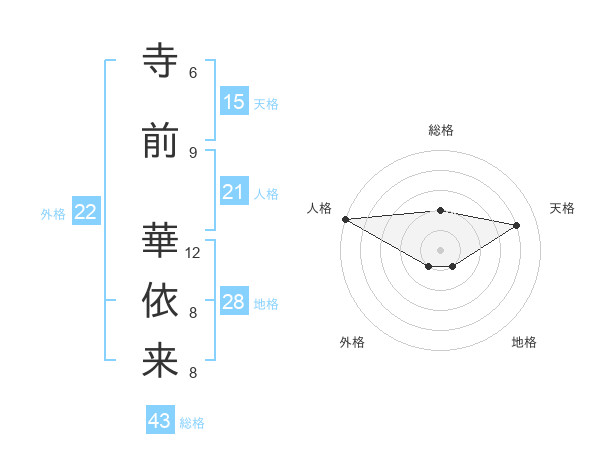 寺前 華依来さんの人格は21画の5点!