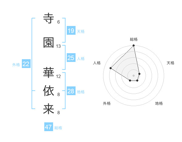 寺園 華依来さんを姓名の画数から五運を鑑定