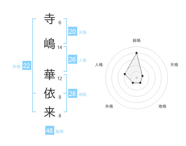 寺嶋 華依来さんの総格は48画の4点!